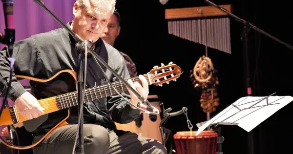 Boris Díaz, maestro de guitarra del campus Chihuahua, aprovechó la velada para interpretar y presentar su nuevo disco, Nawára, material que repasa los orígenes de los instrumentos ancestrales del chapareke, birimbao y la guitarra, en un concierto que se llevó acabo en el Teatro de Cámara de la ciudad.