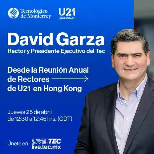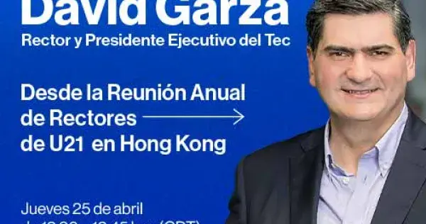 Conéctate aquí este jueves 25 de abril de 12:30 a 12:45 hrs (CDT), a la plática desde Hong Kong, con el rector y presidente ejecutivo del Tecnológico de Monterrey.