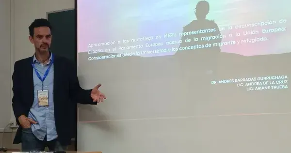 Su intervención fue resultado de una investigación que analiza las narrativas de eurodiputados del Parlamento Europeo sobre migración y refugio, desde una perspectiva académica y de derechos humanos.
