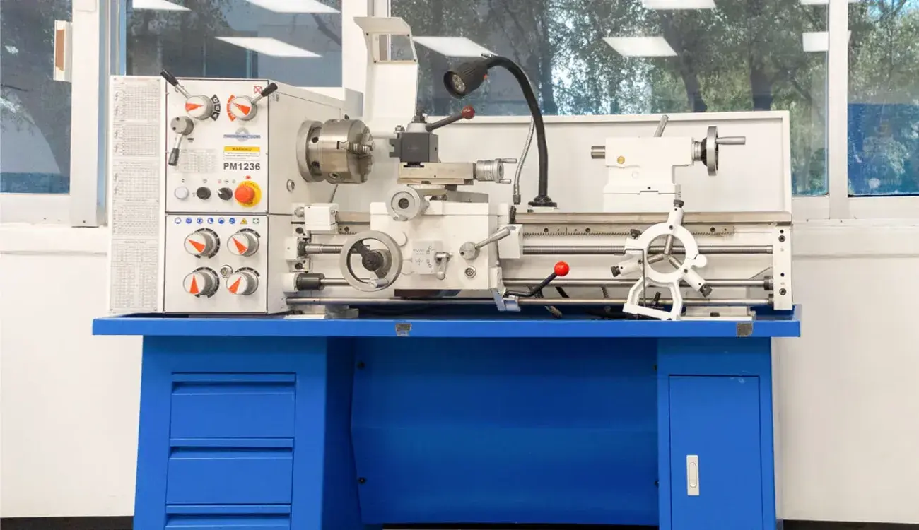El torno es esencial para el mecanizado de metales. Permite dar forma cilíndrica a piezas, fabricando elementos como ejes, roscas o tornillos con alta precisión, lo que lo convierte en un pilar de la manufactura mecánica.